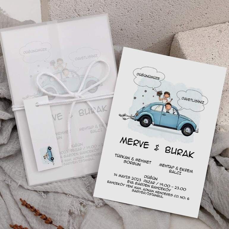 - Çizim davetiye, illüstrasyon odaklı tasarımıyla davetiyeye sanatsal ve kişiye özel bir ifade alanı açar.