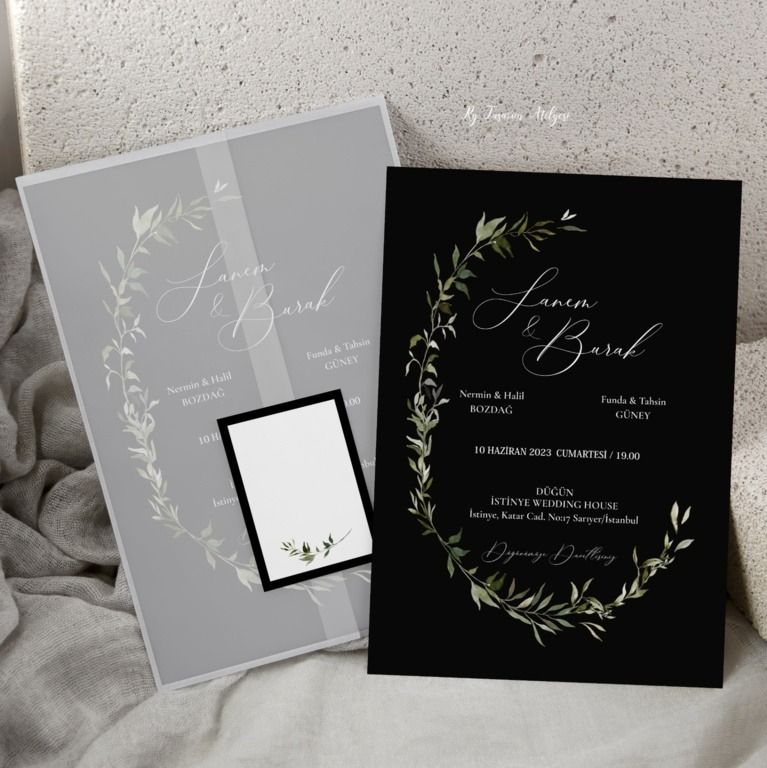 - Sade davetiye, minimal tasarımıyla yazı ve grafik detayların net şekilde öne çıkmasını sağlar.
