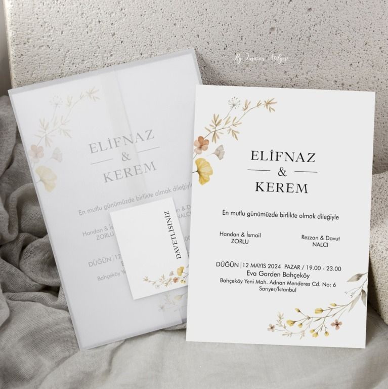 - Sade davetiye, minimal tasarımıyla yazı ve grafik detayların net şekilde öne çıkmasını sağlar.
