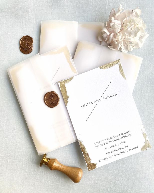 - Altın varak detayı davetiye tasarımına ışıltı ve şıklık katar.