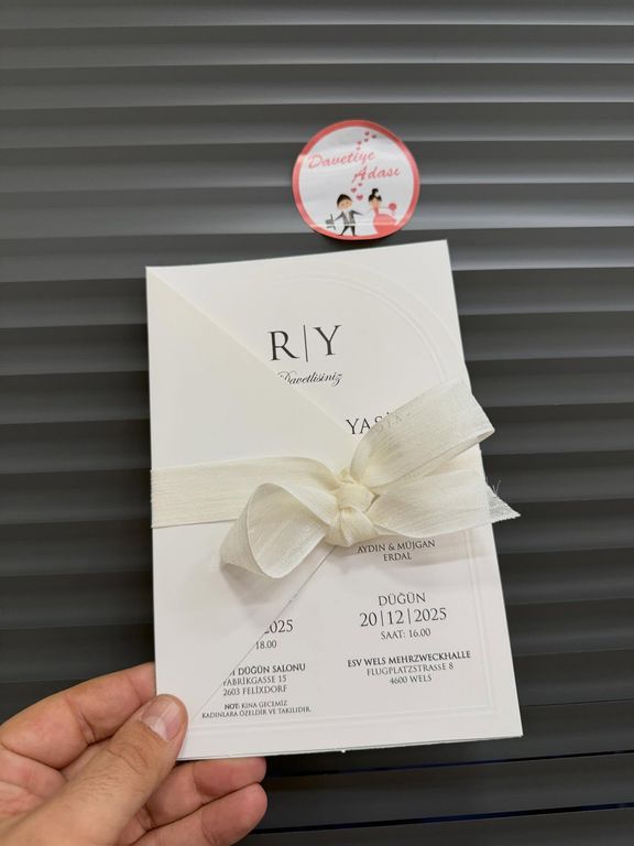 - Sade davetiye, minimal tasarımıyla yazı ve grafik detayların net şekilde öne çıkmasını sağlar.