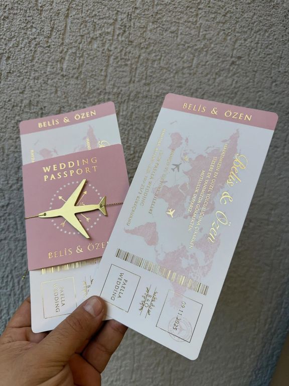 - Pasaport davetiye, seyahat temalı kurgusuyla daveti eğlenceli ve dikkat çekici bir formda sunar.
