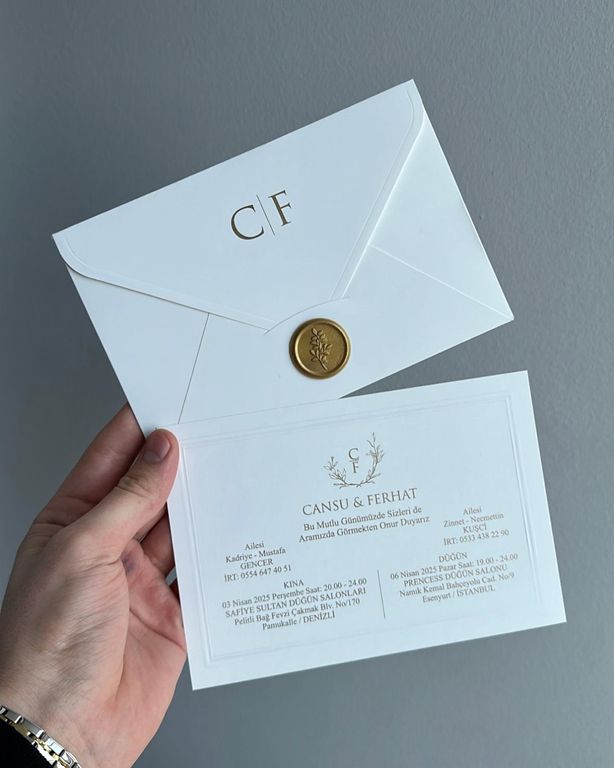 - Altın varak detayı davetiye tasarımına ışıltı ve şıklık katar.