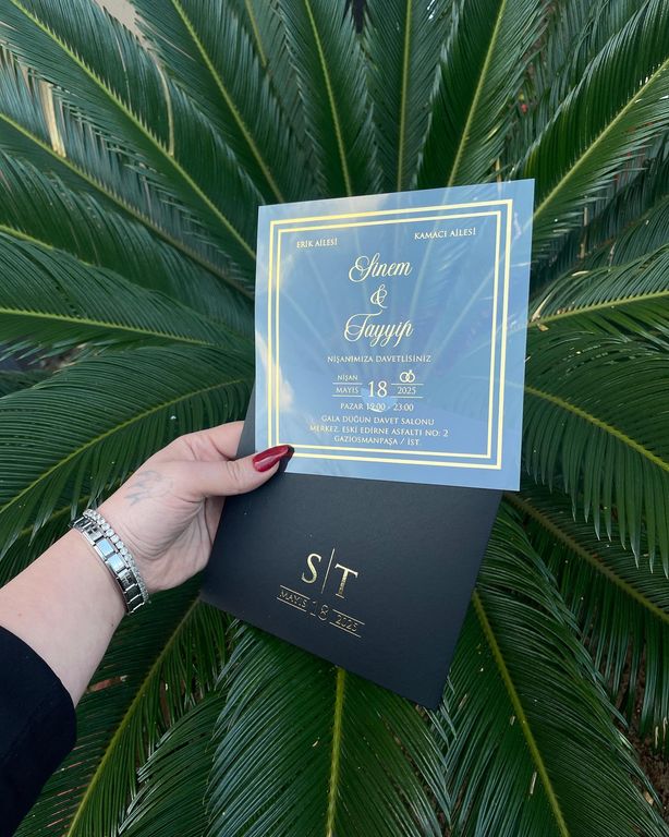 5. Altın varak detayı davetiye tasarımına ışıltı ve şıklık katar.