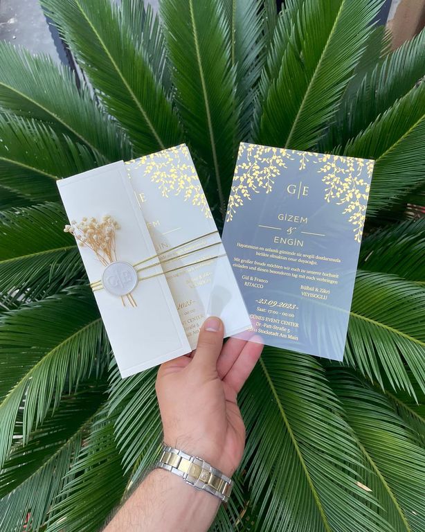 5. Altın varak detayı davetiye tasarımına ışıltı ve şıklık katar.