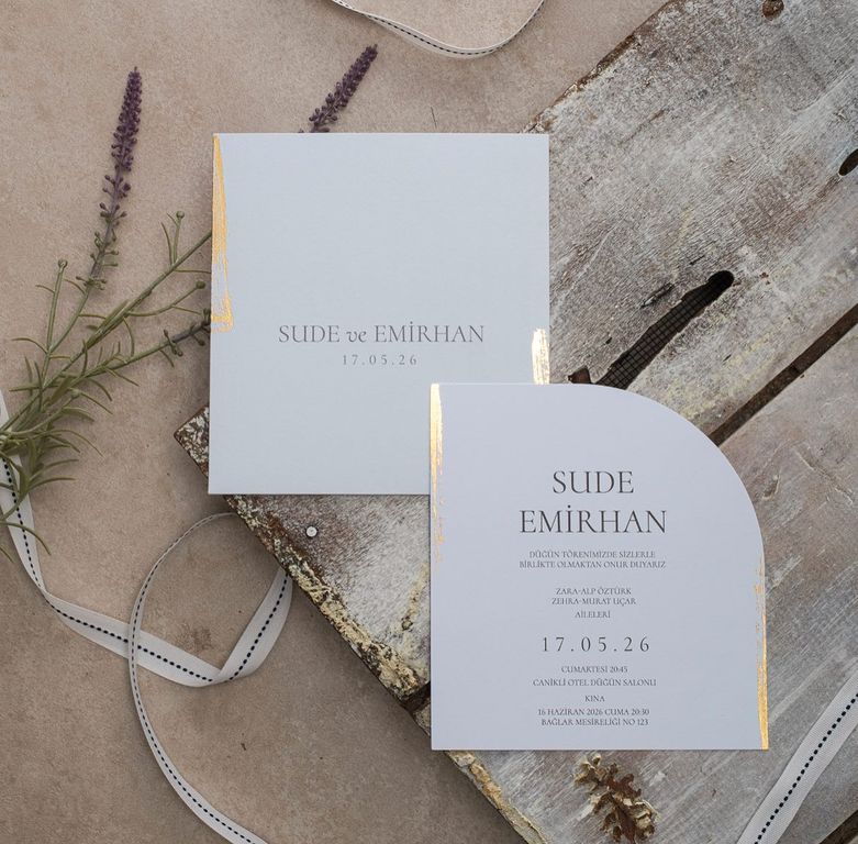 - Altın varak detayı davetiye tasarımına ışıltı ve şıklık katar.