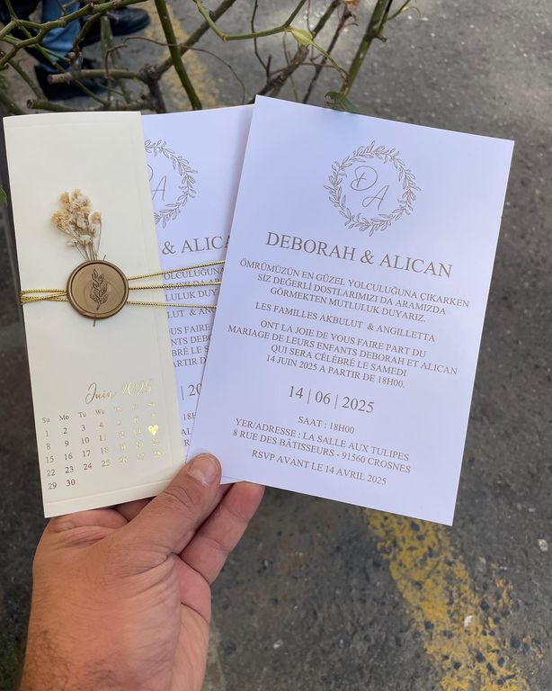 - Altın varak detayı davetiye tasarımına ışıltı ve şıklık katar.