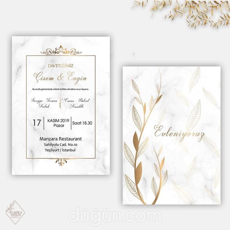 - Altın varak detayı davetiye tasarımına ışıltı ve şıklık katar.