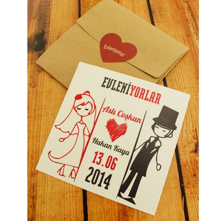 - Karikatürlü davetiye, çifte özel çizimleriyle davet sürecine eğlenceli ve özgün bir karakter kazandırır.