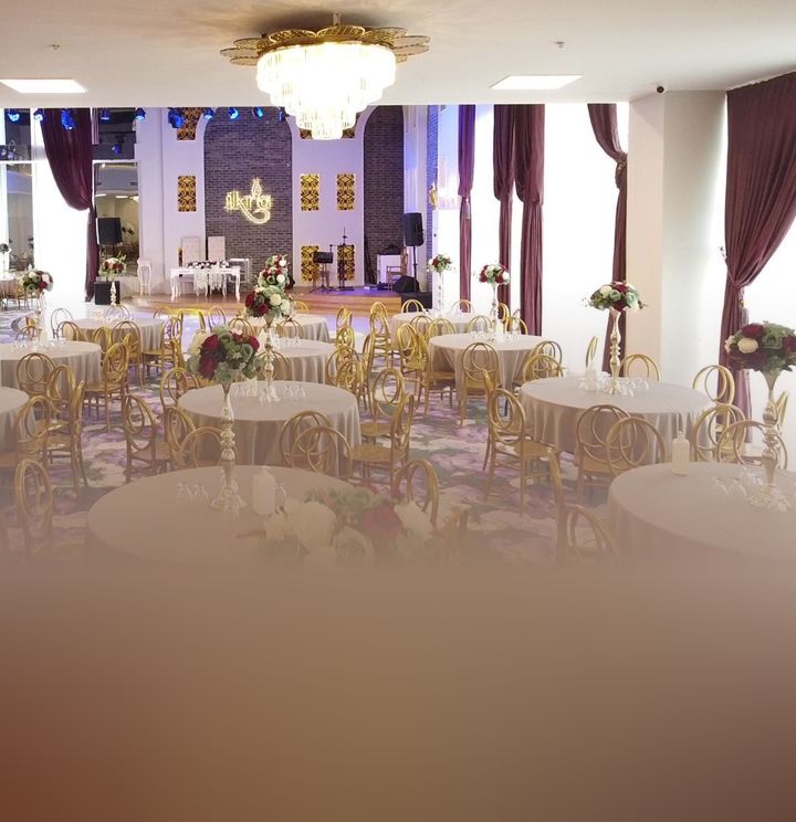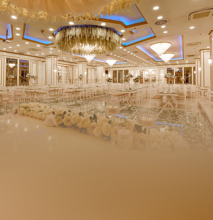 Modern ve ihtişamlı • Cam salon • Yüksek tavan • Geniş dans pisti • Canlı müzik • Sahne ışık sistemi • Alkol servisi yok • Geniş otopark