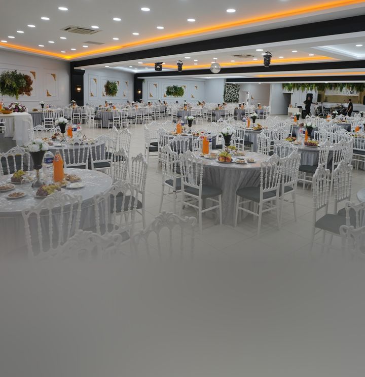 Modern ve ihtişamlı • Yüksek tavan • Kolonsuz • Özel nikah alanı • Geniş dans pisti • Sahne ışık sistemi • Alkol servisi yok • Geniş otopark