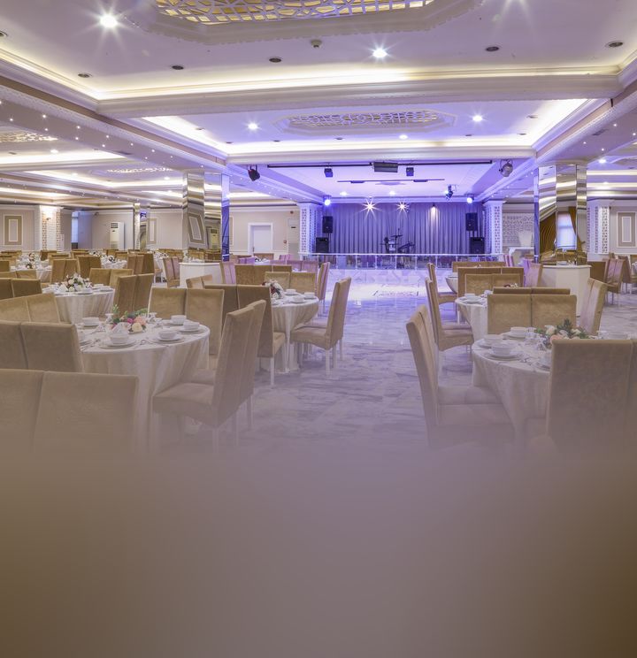 Modern ve ihtişamlı • Cam tavan • Kolonsuz • Menü tadımı • Etkili havalandırma • Geniş dans pisti • Canlı müzik • Alkol servisi yok
