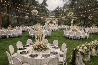 Farklı konseptler • Rustik süslemeler • Kır düğünü ışıkları • Çim zemin • Açık nikah alanı • Canlı müzik • Alkol servisi yok • Geniş otopark