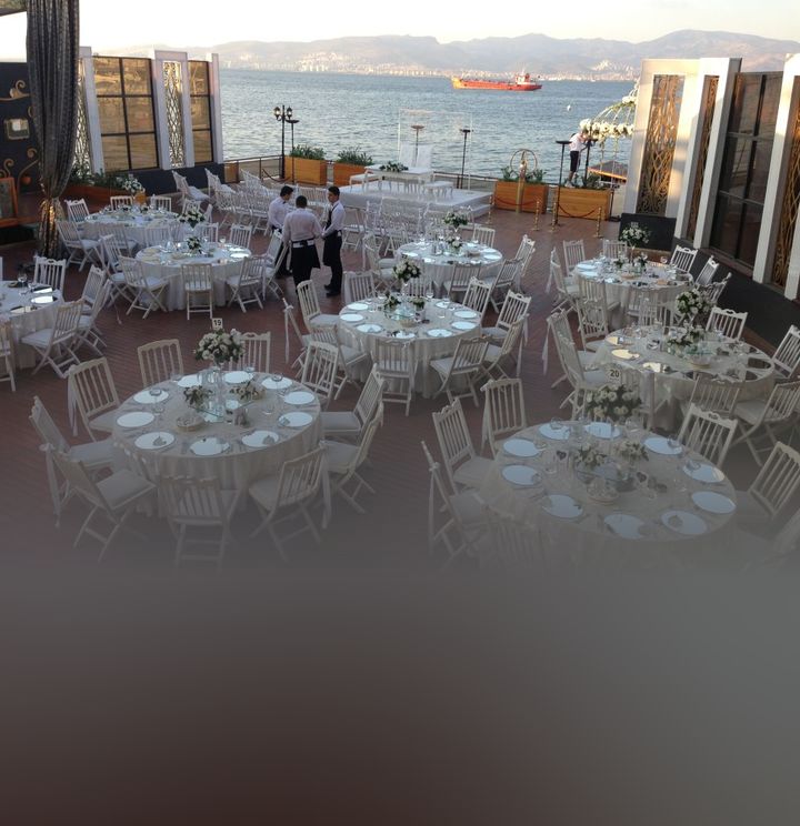Deniz manzaralı • Teras salon • Modern ve sade • Açık nikah alanı • Canlı müzik • Sahne ışık sistemi • Geniş otopark • Kolay ulaşım