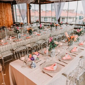 Ankara'da düğün organizasyon şirketlerinden Damla Akça Organizasyon olarak her detayda kaliteyi ve estetiği ön planda tutuyoruz. Dekorasyon hizmetlerimiz, her mekana özel süsleme tavsiyeleriyle başlıyor. Dikdörtgen, kare ve yuvarlak masa seçenekleri; Napolyon, Tiffany, Bella ve Hazeran gibi sandalye modelleri ile her zevke uygun çözümler sunuyoruz. Canlı ve yapay çiçeklerle, şamdanlar ve masa örtüleriyle dekorasyonunuzu tamamlıyoruz.