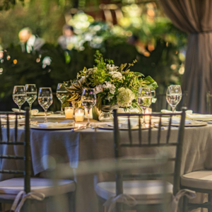 Duman Event, düğün organizasyonlarında çiftin hayal ettiği her konsepte uyum gösteriyor. Zengin içerikli aksesuarları ve dekorasyon alternatifleri firmayı ayrıcalıklı kılıyor. Dikdörtgen masa ve beyaz minderli napolyon sandalyelerle oturma düzeni hazırlanırken masa üstü aksesuarlar yeşil ve turuncunun neşeli ahengini yansıtıyor. Hasır supla, seramik ve porselen servisler, mor cam kadehler, şamdanlar, mumlar ve diğer dekoratif objelerle son dokunuşlar yapılıyor.