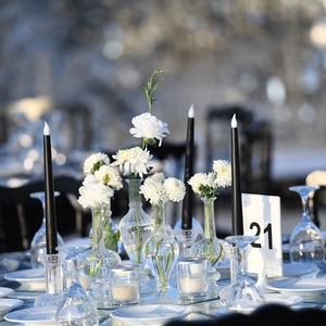 Düğün organizasyonlarında çiftlerimize özel tasarım ve tema geliştirmeyi tercih ediyoruz. Oturma düzenimizde genellikle dikdörtgen masaların etrafına beyaz ve siyah minderli napolyon sandalyeler yerleştiriyoruz. Masalarımızın süslemesinde saten örtüler, rengarenk canlı çiçekler, şık çok kollu şamdanlar, tek kollu cam şamdanlar, mumlar, şeffaf suplalar, ayna altlıkları ve numaratörler kullanıyoruz. Arzu eden çiftlerimize seçmeleri için en az 5 adet demo masa hazırlama imkanı sunuyoruz.