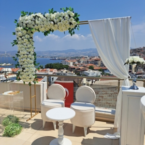 İzmir düğün organizasyon şirketleri içinde uçtan uca hizmet anlayışımız ile dikkat çekiyoruz. Tüm süreci en ince ayrıntısına kadar planlıyoruz. Mekan düzenlemesinden başlıyor, masa ve sandalye temini, çiçek aranjmanları, ışıklandırma ve kokteyl alanı düzenlenmesi gibi çeşitli hizmetleri veriyoruz. Bütünsel bir deneyim sunuyor, tüm planlamayı tek bir yerden profesyonelce yönetiyoruz. Böylece çiftlerimiz rahat, güvenli ve keyifli bir süreç geçiriyor.