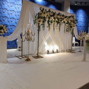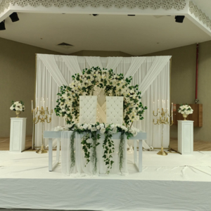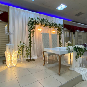 Masa ve sandalye düzenlerinden masa örtüsü ve şamdanlara, yapay çiçek aranjmanlarından masa ortası süslemelerine kadar her detayı titizlikle planlıyor ve hayata geçiriyoruz. Düğünlerde romantik çiçek kemerleri, gelin yolu süslemeleri ve özel ışıklandırmalarla büyüleyici bir atmosfer yaratırken; nişan ve söz merasimlerinde zarif masa arka fonları ve konsept renk uyumlarıyla şıklığı ön plana çıkarıyoruz.