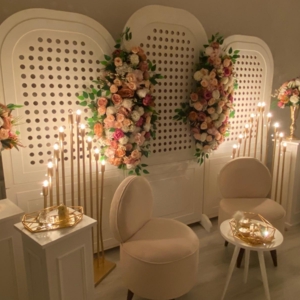 Düşlediğiniz düğün organizasyonunu tasarlamak için de hiç vakit kaybetmeden harekete geçiyoruz. Hazırlıklara gelin yolu ile başlıyor, salonun her köşesini seçtiğiniz konsepte uygun hale getiriyoruz. Masa sandalye temini, LED ışıklarla aydınlatma, arka fon çalışması ve nikah masası dekorasyonu ile mekanda düzeni sağlıyoruz. Daha sonra masa ve sandalye süslemeleri de yapıyoruz. Masaların üzerinde çiçekler, şamdanlar ve suplalara yer veriyor; sandalyelerde rengarenk tüller ve taptaze çiçeklerle son dokunuşları tamamlıyoruz.