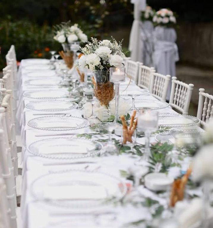 Dekorasyon ve süsleme aşamasında, tamamen sizin zevklerinize odaklanarak özel konseptler geliştiriyoruz. Mekanın ruhuna uygun giydirmeler yapıyor, masa ve sandalye temini ile estetik bir bütünlük oluşturuyoruz. Karar verme sürecinizi kolaylaştırmak adına size özel demo masa hazırlayarak, düğün günü nasıl bir görüntüyle karşılaşacağınızı önceden görmenizi sağlıyoruz. Renk paletlerinden çiçek aranjmanlarına, şamdanlardan arka fon süslemelerine kadar her görsel detayı büyük bir özenle tasarlıyoruz.