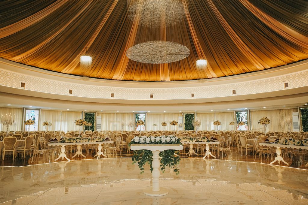 Beyaz ve altın renginin uyumundan yararlanan Asfor Arus Düğün Salonu Ankara, ihtişamlı bir görünüme sahip. Kumaş kaplı, konforlu sandalyeler kullanan mekan hem çiftlerin hem de misafirlerinin rahatını ön plana koyuyor. Masalarsa yuvarlak veya yarım daire biçiminde tercih edilmiş. Masalarda yer alan çiçek detayları ve taşlı şamdan süslemeleri mekanın gösterişli görünümüne katkıda bulunuyor.