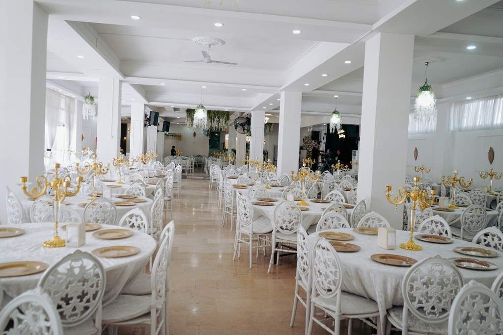 Ankara Mamak düğün salonlarından Kayaş Kardelen Düğün Salonunun dekorasyonunda göz alıcı unsurlar bulunuyor. Siyah veya beyaz masa örtüleri, 5, 7, ve 10 kişilik yuvarlak beyaz masalar, altın tonlarındaki şamdanlar ve gold detaylar salonu şık kılıyor. Yapay çiçek aranjmanları ise kırmızı ve yeşil tonlarıyla masaları ve salonun köşelerini renklendiriyor. Beyaz dikdörtgen sütunlar ise gelin yolunu zarifçe süslüyor.