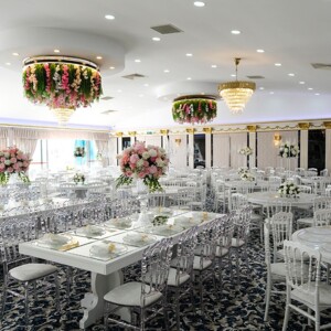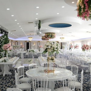 Dekorasyonumuzda, düğün temasına uygun ve tamamen size özel dokunuşlar ön plandadır. Çiçekler, masa düzenlemeleri, aydınlatmalar ve diğer dekoratif detaylarla salonumuzda sıcak ve samimi bir ortam yaratıyoruz. Masa düzenlemelerimizde ise konuklarınızın rahatlığı ve şıklığı bir arada sunuluyor. Masa örtülerinden çiçek aranjmanlarına kadar her detay özenle seçiliyor; böylece düğününüzün ambiyansı daha da büyülü hale geliyor.