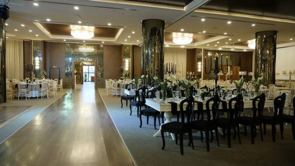 Daha büyük çapta davetler için tercih edilebilecek davet alanımız ise Venüs Salon. 750 ila 1.000 kişilik kapasitesi, büyük pisti ve ferah bir atmosferi var. Bu salondan geçiş yapılabilen, harika bir bahçe manzarasına sahip bir de Venüs Terasımız mevcut. Üzeri açık olan terasımız 200-300 kişilik yaz ve ilkbahar düğünleri için oldukça elverişli.