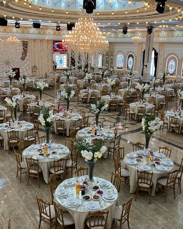 Salon Beyaz Köşk’te dekorasyon anlayışı klasik ve gösterişli detaylar üzerine kuruluyor. Düğün salonunda yuvarlak masalar, şık masa örtüleri ve zarif çiçek aranjmanlarıyla bütünlük sağlanıyor. Kristal görünümlü sandalyeler ve büyük avizeler de salonun ihtişamlı havasını tamamlamaya yardımcı oluyor. İstanbul Sultanbeyli Beyaz Köşk Düğün Salonu, zarif dekorasyonuyla da gönüllerde taht kurmayı başarıyor.