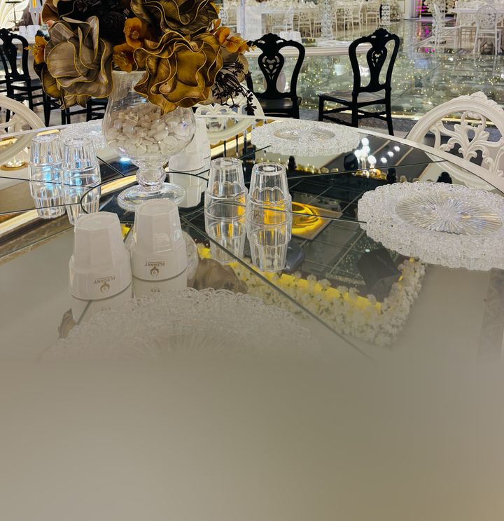 Salonun genel dekorasyonunun yanında gelin-damat masasının süslemesi de oldukça önemli. Masanın süslemesinde tül ya da dantel örtüler tercih etmeniz ilgi çekici bir görüntü oluşturabilir. Bunun yanında masada üstünde isminizin yazılı olduğu kadehler ya da masa üstü yazıları tercih edebilirsiniz. Yine diğer masalarda da kullanılabileceği gibi çiçekler ve mumlar da ortamla uyumlu olabilir.