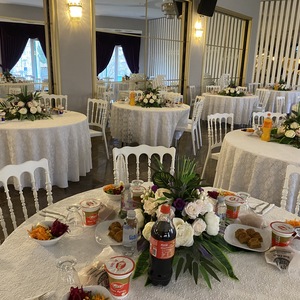 Dilerseniz giydirme yapabileceğimiz beyaz şık tiffany sandalyelerimiz, ihtişamlı kollu şamdanlarımız, dikkat çekici aydınlatmalarımızla öne çıkıyoruz. Rahat ve ferah davet alanlarımızda davetli sayınıza göre düzenlenecek 10 kişilik yuvarlak masa düzeni kuruyoruz. Yeni hayatınıza evet diyeceğiniz beyaz gelin damat masamızın arkasında şık ve kaliteli rengarenk çiçek duvarımızla neşe ve mutluluğunuzu fotoğraf karelerine yansıtıyoruz.