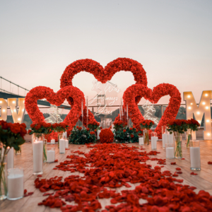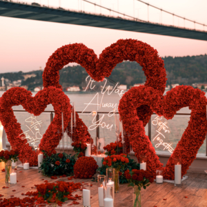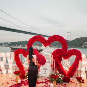 İstanbul evlilik teklifi organizasyon firmaları içerisinde bizi tercih eden çiftlerimize şehrin en nadide manzaralarından birini sunuyoruz. Elbette hizmetlerimiz bu kadarla da sınırlı kalmıyor. İlk iş olarak ise hayalinizdeki konsepti tasarlıyoruz. Organizasyonlarda en çok romantizmin temsilcisi olan kırmızı, beyaz ve pembe tonlarında tasarlanan dekorları tercih ediyoruz. Gün batımının romantik ışıkları ile uyan doğal ışıklandırmalar tercih ederek ambiyansı tamamlıyoruz.