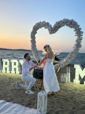 Üstelik teklif mekanları bunlarla da sınırlı değil! Açık mekan tercih edenlerin yoğun ilgi gösterdiği sahil mekanı da mevcut. Sahilde çardak altında ya da aşkın sembolü olan kalp ateş çemberinin önünde romantik müzik eşliğinde teklif ederken heyecanı yoğun olarak hissettiriyor. Yat ve tekne konseptinde de denizin sonsuzluğunda, sonsuzluğa uzanacak aşkınızın ilk adımını atabiliyorsunuz. Ayrıca, tüm tema içeriklerinde profesyonel fotoğraf ve video hizmeti yer alıyor.