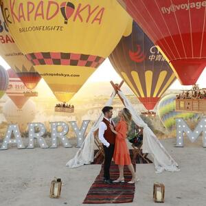 Herkes bilir, en romantik evlilik teklifi Kapadokya’da edilir! Sıcak hava balonları Peribacalarının büyüleyici dokusu, Kapadokya’nın göz alıcı güzelliği eşliğinde havalanırken diz çökerek “Benimle evlenir misin?” dediğiniz an masalları aratmayacaktır. İşte bu ana kadar her şeyi sizin için biz planlıyoruz. Siz sadece Peribacalarında evlenme teklifi etme hayalinize, aşkınıza özgü detaylara ve yol arkadaşınıza sarf edeceğiniz anlamlı sözlere odaklanın.