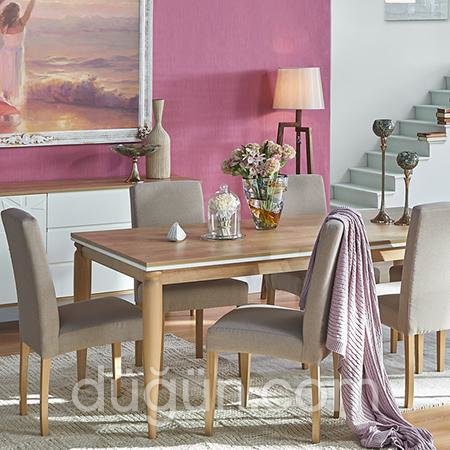 Büyüyebilir masası ile kalabalık davetlerinizin üstesinden rahatlıkla gelmenizi sağlayacak Theresa yemek takımı modern sandalyeleri ile öne çıkıyor. Bu takımı aydınlık yemek odası döşemek isteyen çiftlere öneriyoruz.