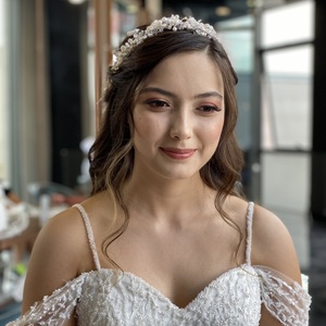Topuz ve açık saç modellerinde uzman olan ekip, yüz hatlarına uyum sağlayan zarif görünümler oluşturuyor. Dağınık topuzlar, romantik dalgalar ve minimal aksesuarlarla modern bir zarafet yakalanıyor. Stil danışmanlığı hizmetiyle gelinlerin tarzını en iyi şekilde yansıtacak modeller belirleniyor. Profesyonel ekipmanlar ve kaliteli ürünlerle yapılan uygulamalar, gün boyu kalıcı bir ışıltı sağlıyor.
