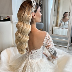 Gelin saçını ve makyajını yaparken düğün konseptinden gelinlik tarzına ve yüz tipine kadar birçok detayı göz önünde bulunduruyoruz. Bohem gelinliklerin havasına uyacak yarım toplu dalgalı saçlar, romantik bir görünüme sahip salaş örgüler ve klasik görünüm seven gelinlerimiz için sade ense topuzları gibi birçok saç modelini ustalıkla yapıyoruz. Gelin makyajı için ise; doğal bir görünüm sağlayan sade, gözleri ortaya çıkaran buğulu ve farklılık yaratan renkli model gibi pek çoğunu uyguluyoruz.