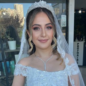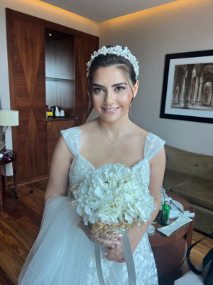 Sıra gelin makyajınıza geldiğinde, sizi uzun yıllar dizi ve film setlerinde make up artist olarak görev almış Gizem Hanım’ın marifetli ellerine emanet ediyoruz. Burada da en önemli kıstasımız zevkleriniz, ten renginiz, gelinliğinizin modeli ve elbette istekleriniz. Makyaj uzmanımız gelinimize kulak verdikten sonra ona en yakışacak ve son derece doğal bir makyaja imza atıyor.