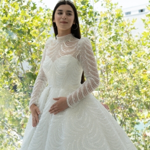 Hayallerinizdeki gelinliği arıyorsanız, Helen A kesim kaburga detaylı, Fransız danteliyle süslenmiş balık model tesettür gelinliklerimiz tam size göre! İnce işçilik ve zarafeti bir araya getiren bu özel tasarım, en özel gününüzde size eşsiz bir şıklık sunuyor. Hem modern hem de klasik çizgileri buluşturan bu tarz gelinliklerle özgün ve etkileyici bir görünüm vaat ediyoruz.