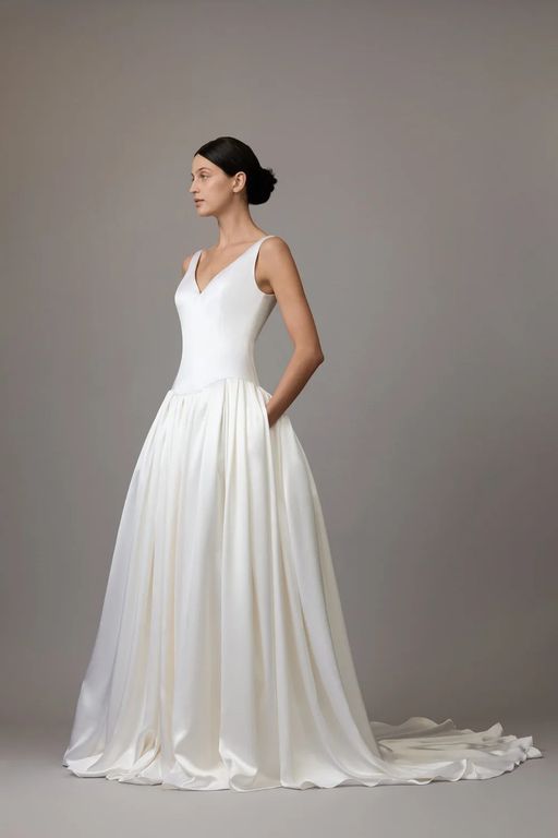 - En yaygın gelinlik yaka tiplerinden bu V yaka gelinlik, boyu daha uzun, göğüsleri ise olduğundan daha küçük gösteriyor.
