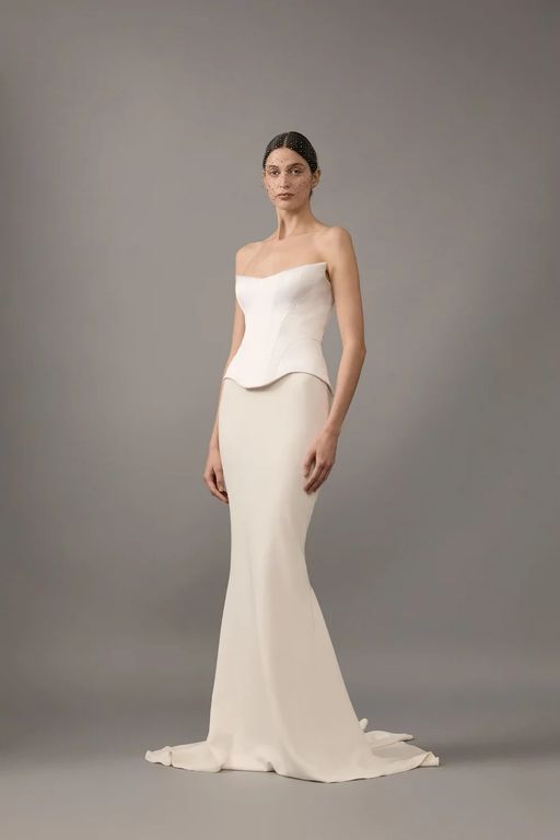 - Omuzları öne çıkaran bu straplez yaka gelinlik, özellikle açık ya da yarım toplu saç modelleri ile büyük bir uyum sağlıyor.