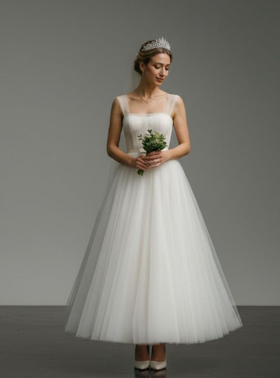 A Kesim Askı Detaylı Gelinlik, zarif ve minimal tasarımıyla öne çıkan romantik bir modeldir. Kare yaka formu, feminen bir duruş sunarken ince askılarıyla sadeliğin şıklığını yansıtır. Tül dokulu hafif kumaşı, doğal ve rahat bir silüet oluşturur. Hem modern hem de masalsı bir görünüm arayan gelinler için mükemmel bir tercih olan bu model, zarafet ve sadeliği bir araya getirerek zamansız bir şıklık sunar.