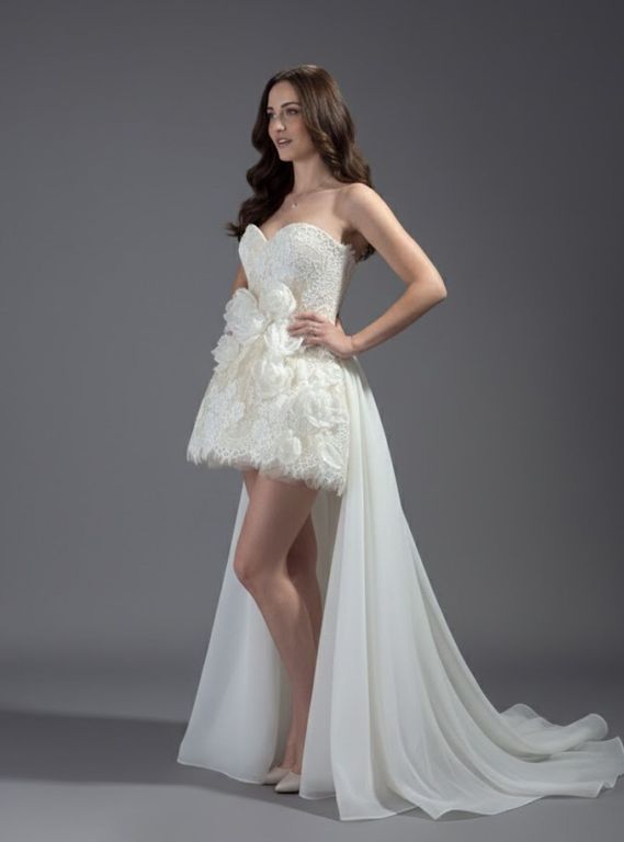 - Omuzları öne çıkaran bu straplez yaka gelinlik, özellikle açık ya da yarım toplu saç modelleri ile büyük bir uyum sağlıyor.