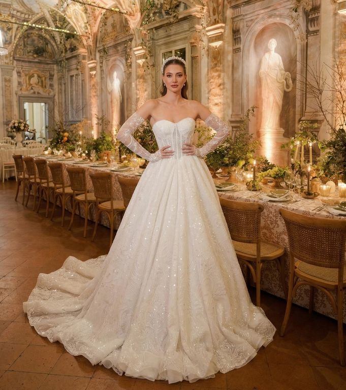3. Özellikle şık bir otelde ya da tarihi mekanda evleneceksen, bu görkemli gelinlik ile iddialı tarzını yansıtabilirsin.
