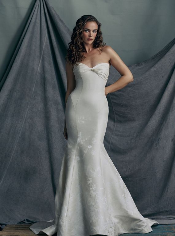 - Omuzları öne çıkaran bu straplez yaka gelinlik, özellikle açık ya da yarım toplu saç modelleri ile büyük bir uyum sağlıyor.