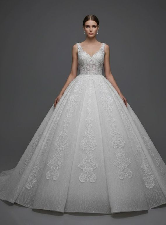 - En yaygın gelinlik yaka tiplerinden bu V yaka gelinlik, boyu daha uzun, göğüsleri ise olduğundan daha küçük gösteriyor.