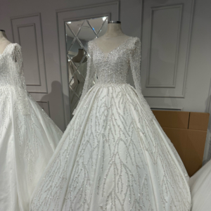 - İnce ve uzun bir boyna sahip gelinlere çok yakışan bu hakim yaka gelinlik, özellikle topuz gelin saçı ile kombinlenince çok şık bir görüntü yaratıyor.
