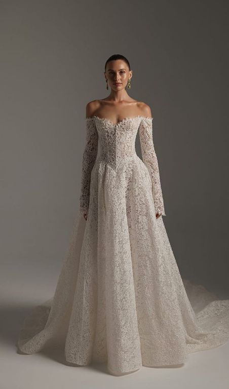 - En çok tercih edilen yaka tiplerinden bu düşük omuz gelinlik, özellikle dar omuzlu gelinlere çok yakışıyor.