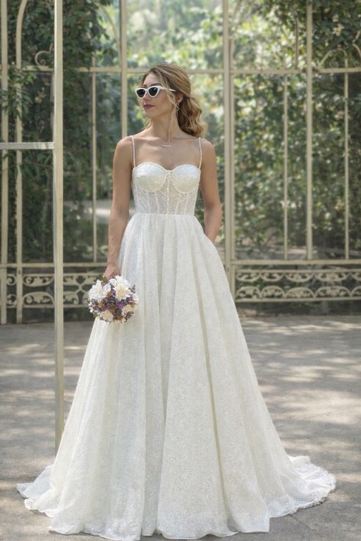 - Naif ve sakin tarzını gelinliğine yansıtmak istiyorsan ve masal gibi bir kır düğünü ile evleneceksen, bu romantik model uygun seçim olabilir.